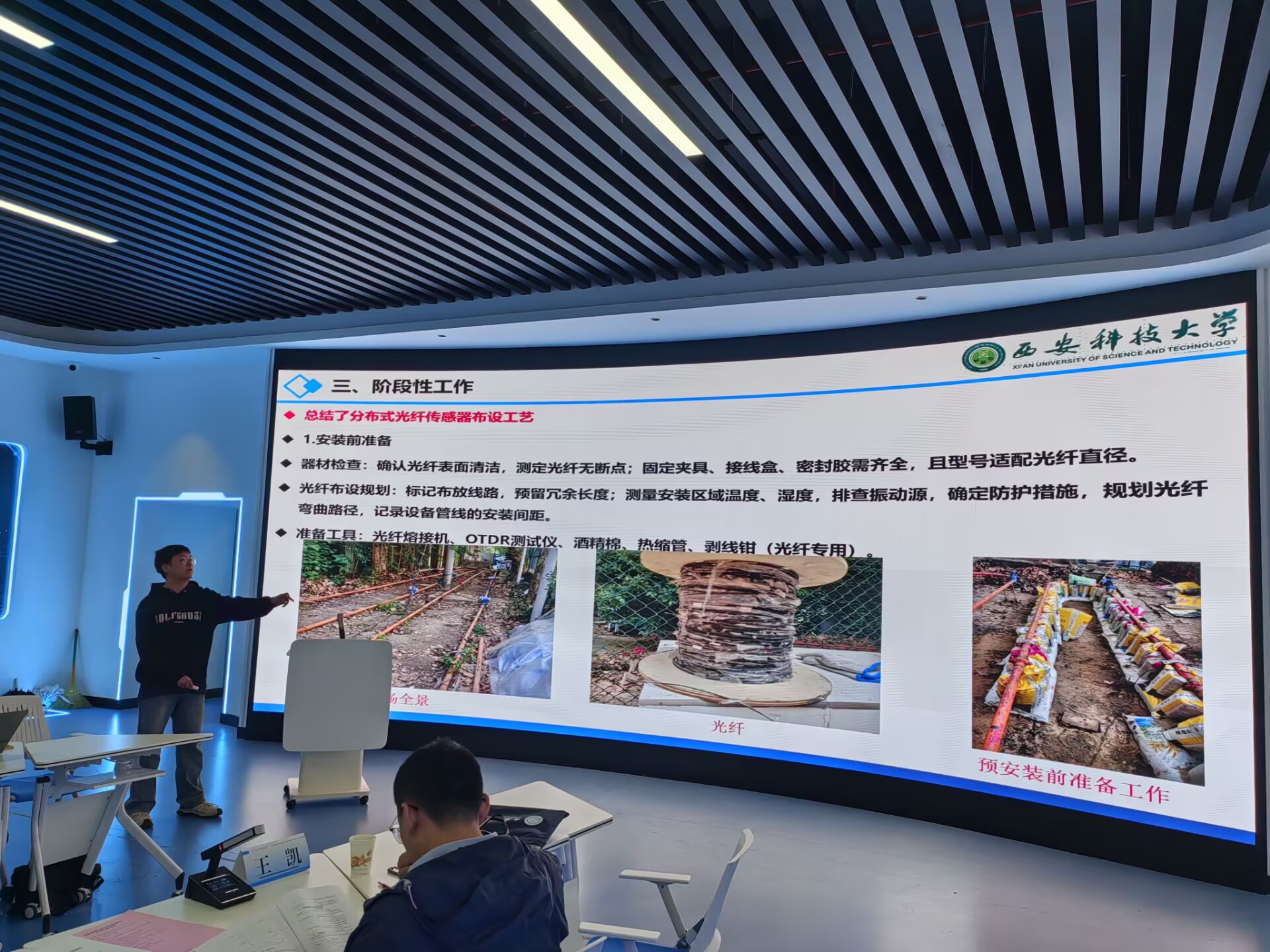 为提升本科生科学素养,激发创新研究热情,实现科研助学,推进教育科技人才一体化发展,10月24日下午,学校首届本科生科研基金项目期中评估推进会,在临潼校区骊山校园双创基地召开。校党委书记来兴平出席会议并讲话。副校长程卫星,党校办、教务处、教学质量监督评估中心、科技处负责人,评估专家,参评的9个项目组本科生和指导教师,共计60余人参加会议。科技处处长翟小伟主持会议。